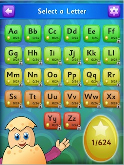Available for the iPad, iPhone and Android tablet devices, Eggy Alphabet includes 4 main alphabet games that cover all upper and lower case letters of the alphabet – that’s a total of 208 activities – plus The Letter Game.